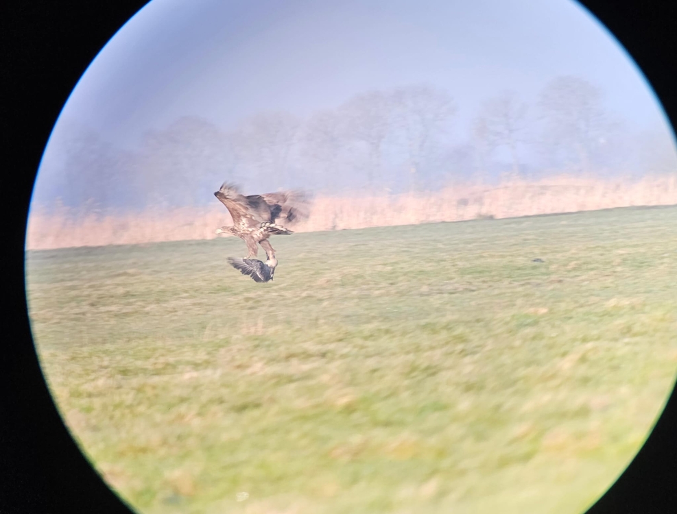 Zeearend met Kolgans, Pontische meeuw en de eerste Grutto van 2025. Foto's mede dankzij Jeroen