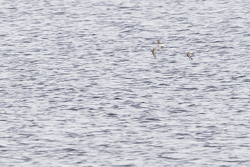 Strandplevier vliegt tussen beide drietenen.
