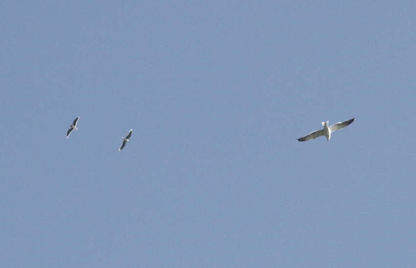 Hoog over met een Kleine Mantelmeeuw