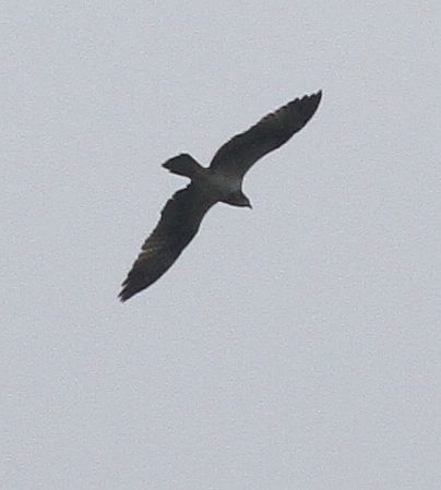 De eerste visarend vandaag. Pas opgepikt als hij al boven onze hoofden was, pijlsnel afglijdend naar het zuiden...