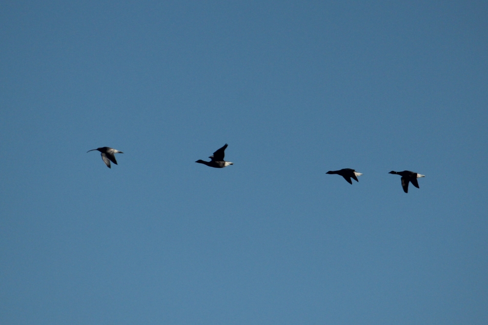 Courlis cendré devant 3 Bernaches