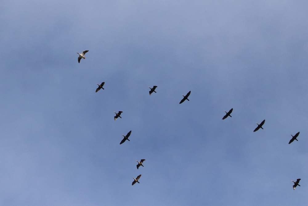 aangevoerd door een grauwe gans