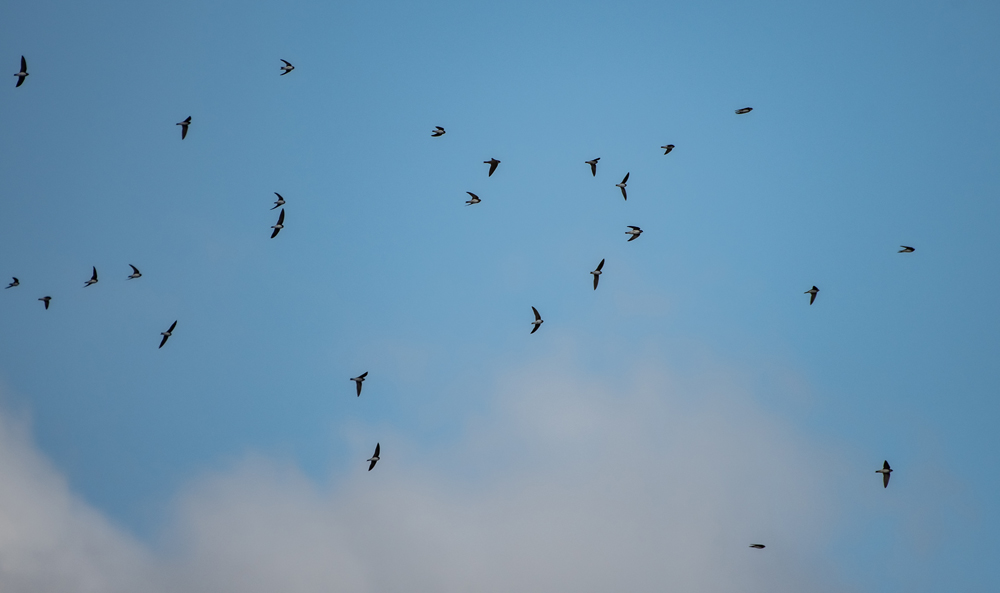 Af en toe duidelijk doortrekkende oeverzwaluwen...