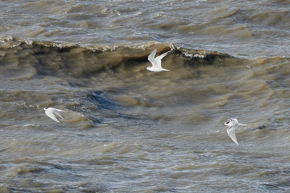 Samen met een adulte, naar winterkleed ruiende, Visdief en een juveniele Visdief